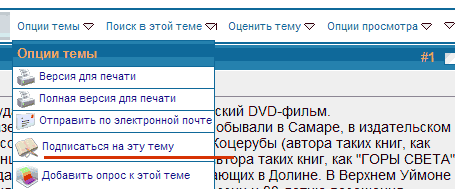 Редактирование списка подписок производится в "Личном кабинете" пользователя. В "Опциях" личного кабинета надо выставить метод подписки на темы. Например: "Моментальное уведомление по электронной почте". Там же можно выставить опции Личных сообщений. Например: "Получать уведомления по электронной почте при получении новых ЛС" и "Разрешить уведомления о новых ЛС всплывающим окном". Кстати, в "Опциях" можно провести и другие полезные настройки личного отображения форума. Последний раз редактировалось Владимир Чернявский, 25.05.2007 в 06:05. | ||