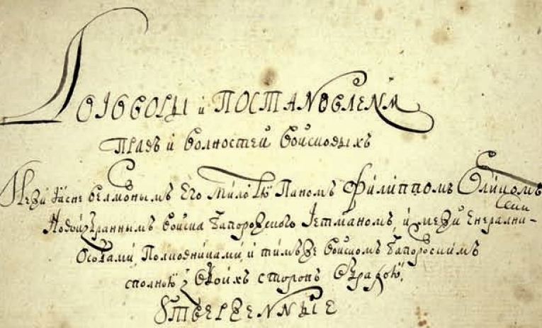 Здесь уже не раз размещались материалы о том, что это обычный документ и что называется он не «пакты и конституции», а вполне банально – «договоры и постановления прав и вольностей войсковых». Да, да..именно такое название оригинала. А не то что там вам внушали все эти 27 лет Вполне обычное название для канцелярского языка петровской России. Так что перестаньте внушать разумным людям байку о «конституции». Выясняется, что Пылып Орлик и не подозревал, что он – Пылып! И начало документа, и личная подпись Орлика, не оставляет сомнений в том, что перед нами оригинал, свидетельствуют, что он сам называл себя вполне по-русски – ФИЛИППОМ Орликом. Потом, если мы посмотрим на грамматику "староукраинского" языка, на котором написан сей документ! И выясняется, что (о, ужас для творцов украинского исторического мифа!) этот самый "староукраинский" язык гораздо ближе к современному русскому языку, чем к современному украинскому! И фактически не отличается от практиковавшегося тогда языка петровских указов, издававшихся "на Московщине" ( термин из современных украинских учебников). Нет в "конституции" Орлика ни слов "але", "що", "де", "та", ни употребления буквы "и" вместо "ы" (оказывается в "староукраинском" языке была эта буква ФИЛИП ОРЛИК НАЗЫВАЕТ СВОЮ РОДИНУ В ЭТОМ ДОКУМЕНТЕ: «ОТЧИЗНА НАША - МАЛАЯ РОССИЯ"! ![]() И кстати, апрель по-«староукраински» будет оказывается не квітень, а таки апрель! А гетман – таки гетман, а не гетьман! Там так и написано... Вот кусочек из оригинала... «Договоры и постановленья прав и волностей войсковых межи ясневелможным его милостю паном Филиппом Орликом, новоизбранным Войска Запорожского гетманом, и межи енералними особами, полковниками и тим же Войском Запороским сполною з обоих сторон обрадою утверженные и при волной елекции формалною присягою от того ж ясневелможного гетмана потверженные». В Великороссии и Малороссии писали и говорили на одном и том же языке, что и подтверждают слова "енералные","утвержденные" и пр. употреблявшиеся в тогдашних официальных российских документах. И в конце подпись ...Нехай станется на векопомную Войска Запороского и всего народу МАЛОРОССИЙСКОГО славу и паматку. В современных украинских источниках слово «малороссийского» почему-то отсутствует. На официальных ресурсах и в учебниках значится: «задля віковічної слави і пам’яті війська запорозького і всього руського народу». Возвращаемся к оригиналу: «Дивный и непостижимый в судьбах своих Бог, милосердный в долготерпении, праведный в казни, како всегда от початку видимого сего света, на праведном правосудия своего мирил едны паства и народы возвышает, другие – за грехи и беззакония смиряет, едны порабощает, другие – свобождает, едны возносит, другие – низвергает, так и народ валечный стародавный козацкий, прежде сего именованый козарский, перш превознесл был славою несмертелною, обширным владением и отвагами рицерскими, которими не тылко окрестным народом, лечь и самому Восточному панству на море и на земли страшен был так далече, же цезар восточный, хотячи оный себе вечне примирити, сопрягл малженским союзом снови своему дочку кагана, то ест князя козарского. Потом славимый во вышных той же праведный судия Бог за умножившиеся неправды и беззакония, многими казням наказавши, тот народ козацкий понизил, смирил и ледво не вечною руиною ни