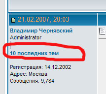 Живая Этика (Агни Йога), Теософия | | | Результаты поиска в Google | | | Результаты поиска по Агни Йоге | | | 21.04.2007, 20:13 | #1 | | Administrator Рег-ция: 14.12.2002 Адрес: Москва Сообщения: 44,904 Благодарности: 1,988 Поблагодарили 7,069 раз(а) в 4,821 сообщениях | 10 последних тем пользователя В постах в разделе информации об участнике добавлено всплывающее меню с 10-ю последними темами, в которых участник является автором.  | | | 22.04.2007, 00:40 | #2 | | Banned Рег-ция: 26.05.2006 Сообщения: 4,070 Благодарности: 334 Поблагодарили 138 раз(а) в 116 сообщениях | Ответ: 10 последних тем пользователя зачем оно нужно?? для тотального контроля друг за другом? раньше можно было в профиле смотреть ...и было достаточно ... | | | 22.04.2007, 08:32 | #3 | | Administrator Рег-ция: 14.12.2002 Адрес: Москва Сообщения: 44,904 Благодарности: 1,988 Поблагодарили 7,069 раз(а) в 4,821 сообщениях | Ответ: 10 последних тем пользователя Цитата: Сообщение от vetall2000 зачем оно нужно?? для тотального контроля друг за другом?... |  Веталл, если применить "принцип доброго глаза", то наверняка можно использовать эту новую возможность форума с доброй пользой. | | | 22.04.2007, 09:12 | #4 | Рег-ция: 15.07.2005 Сообщения: 8,847 Благодарности: 790 Поблагодарили 1,823 раз(а) в 1,176 сообщениях | Ответ: 10 последних тем пользователя Цитата: Сообщение от Владимир Чернявский ...если применить "принцип доброго глаза".. | Ну это только если ... А на самом деле, разве его (этот принцип) тут на форуме все активно применяют? Если да, то этот "принцип доброго глаза" в больших солнцезащитных очках.  | | | 22.04.2007, 09:32 | #5 | | Administrator Рег-ция: 14.12.2002 Адрес: Москва Сообщения: 44,904 Благодарности: 1,988 Поблагодарили 7,069 раз(а) в 4,821 сообщениях | Ответ: 10 последних тем пользователя Цитата: Сообщение от Борис Солнцев Цитата: Сообщение от Владимир Чернявский ...если применить "принцип доброго глаза".. | Ну это только если ... | Это "если" зависит от доброй воли каждого. | | | 22.04.2007, 10:42 | #6 | | Banned Рег-ция: 17.11.2005 Адрес: Украина Сообщения: 14,036 Благодарности: 1,636 Поблагодарили 1,451 раз(а) в 1,141 сообщениях | Ответ: 10 последних тем пользователя А мне нравицца. Иногда забываешь, в какой именно теме отвечал оппоненту, и начинаешь лазить по всем, где он мог бы быть...  Долго и непродуктивно. Так шо - все правильно.  | | | 22.04.2007, 15:25 | #7 | Рег-ция: 25.09.2004 Адрес: Москва, Кремль :-) Сообщения: 4,666 Благодарности: 116 Поблагодарили 350 раз(а) в 239 сообщениях | Цитата: Сообщение от Владимир Чернявский В постах в разделе информации об участнике добавлено всплывающее меню с 10-ю последними темами, в которых участник является автором. | А почему физическая ссылка во всех надписях " 10 последних тем" ведёт в профиль Пузикова?  У кого отключены скрипты или кто жмёт правой кнопкой мыши и выбирает "открыть в новом окне" - сразу попадают к Пузикову в гости  | | | 22.04.2007, 16:11 | #8 | | Administrator Рег-ция: 14.12.2002 Адрес: Москва Сообщения: 44,904 Благодарности: 1,988 Поблагодарили 7,069 раз(а) в 4,821 сообщениях | Ответ: 10 последних тем пользователя Цитата: Сообщение от Dron.ru Цитата: Сообщение от Владимир Чернявский В постах в разделе информации об участнике добавлено всплывающее меню с 10-ю последними темами, в которых участник является автором. | А почему физическая ссылка во всех надписях " 10 последних тем" ведёт в профиль Пузикова?  У кого отключены скрипты или кто жмёт правой кнопкой мыши и выбирает "открыть в новом окне" - сразу попадают к Пузикову в гости  | Приятно иметь бдительных тестировщиков. Баг закрыл  | | | | Здесь присутствуют: 1 (пользователей: