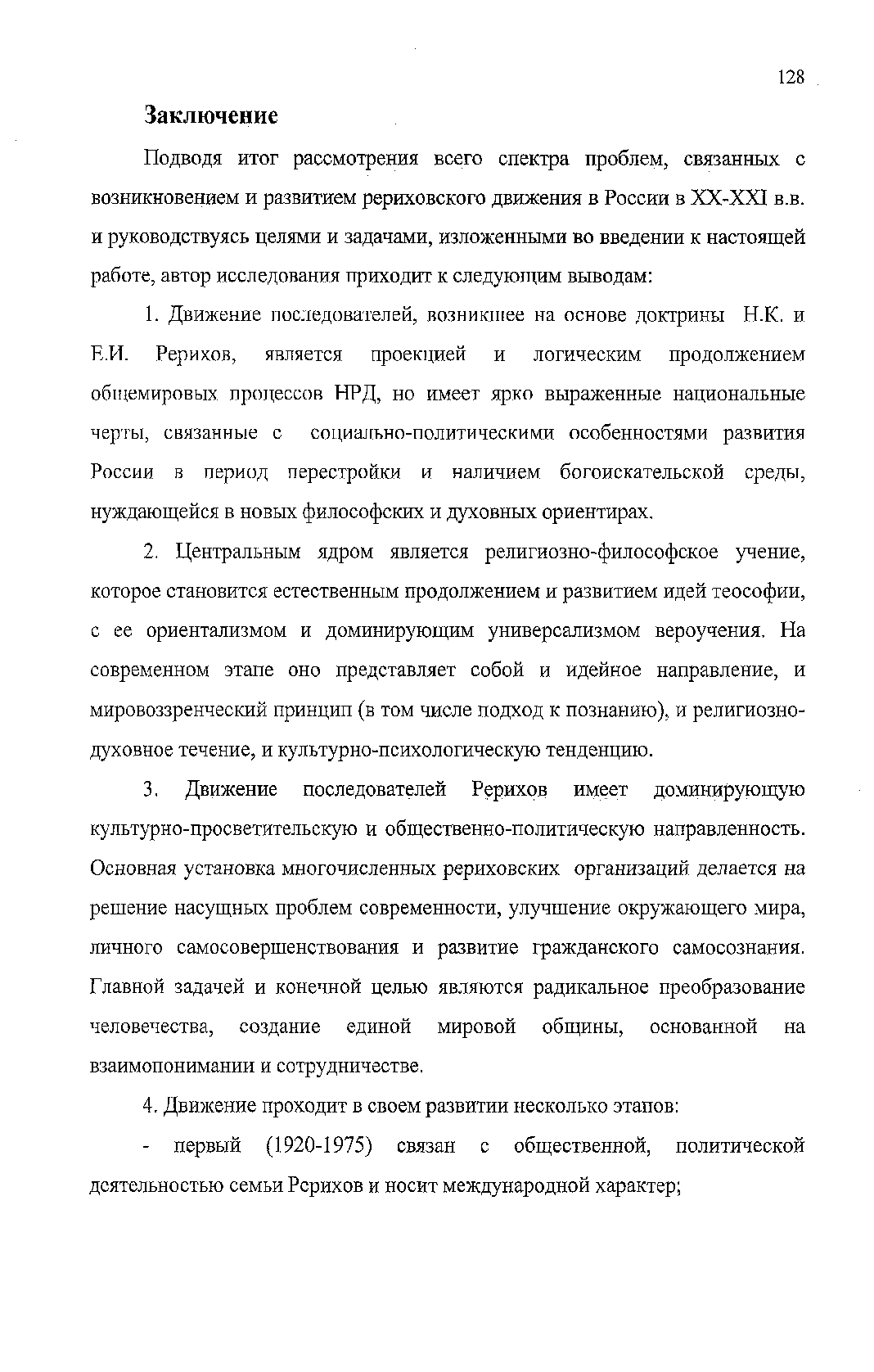 Живая Этика (Агни Йога), Теософия | | | Результаты поиска в Google | | | Результаты поиска по Агни Йоге | | | 17.11.2016, 15:30 | #721 | Рег-ция: 13.01.2003 Адрес: РФ Сообщения: 8,476 Благодарности: 1,124 Поблагодарили 1,580 раз(а) в 903 сообщениях | Ответ: Зернышко 3 Цитата: Сообщение от Эвиза Неужели нельзя на форумах создать такую творческую атмосферу общения? | Я считаю, что трудно, но можно. И в некоторые периоды такая атмосфера на форуме возникает, потом теряем. Иногда сами теряем, иногда нам "помогают". __________________ "Всегда вперед и только ввысь!" | | | | Этот пользователь сказал Спасибо Николай А. за это сообщение. | | 17.11.2016, 18:00 | #722 | | Administrator Рег-ция: 14.12.2002 Адрес: Москва Сообщения: 44,905 Благодарности: 1,988 Поблагодарили 7,073 раз(а) в 4,822 сообщениях | Ответ: РД угасает? Недавно перечитал занимательную диссертацию на тему развития Рериховского Движения. Работе уже 10 лет, но вполне можно обсудить выводы, которые сделал автор. Замечу, что исследование проведено более-менее объективно. Выводы интересны (прилагаю). -------------------------------------- | | | 17.11.2016, 22:31 | #723 | | Banned Рег-ция: 06.01.2009 Адрес: Восток-Запад Сообщения: 8,786 Благодарности: 704 Поблагодарили 2,355 раз(а) в 1,486 сообщениях | Ответ: Зернышко 2 Цитата: Сообщение от Николай А. Цитата: Сообщение от paritratar Вопрос в том, чем РД полезно для всех людей? | Например, следующим. Учение Живой Этики содержит громадный объем жизненных знаний. И участники РД могут выступать в роли добросовестных посредников по их передаче в нужные руки, вдохновителем нужных идей для ученых, творческих людей. | Николай, каким образом подобные идеи могут быть реализованs практически, как думаете? | | | 17.11.2016, 22:51 | #724 | Рег-ция: 13.01.2003 Адрес: РФ Сообщения: 8,476 Благодарности: 1,124 Поблагодарили 1,580 раз(а) в 903 сообщениях | Ответ: Зернышко 2 Цитата: Сообщение от Amarilis Цитата: Сообщение от Николай А. Цитата: Сообщение от paritratar Вопрос в том, чем РД полезно для всех людей? | Например, следующим. Учение Живой Этики содержит громадный объем жизненных знаний. И участники РД могут выступать в роли добросовестных посредников по их передаче в нужные руки, вдохновителем нужных идей для ученых, творческих людей. | Николай, каким образом подобные идеи могут быть реализованs практически, как думаете? | Применений много. Например, они были реализованы в виде небольших вкраплений из ЖЭ в произведениях Ивана Ефремова. Герои его книг произносят прекрасные речи в подходящих для этого эпизодах жизни героев. На этом форуме см. тему о нем тут. __________________ "Всегда вперед и только ввысь!" | | | 17.11.2016, 23:25 | #725 | Рег-ция: 13.01.2003 Адрес: РФ Сообщения: 8,476 Благодарности: 1,124 Поблагодарили 1,580 раз(а) в 903 сообщениях | Зернышко 4 Цитата: Сообщение от Владимир Чернявский Недавно перечитал занимательную диссертацию на тему развития Рериховского Движения. Работе уже 10 лет, но вполне можно обсудить выводы, которые сделал автор. Замечу, что исследование проведено более-менее объективно. Выводы интересны (прилагаю). -------------------------------------- | Да, помню диссертацию Т. К. Симанженковой. Обсуждалась бурно и на форумах, на сайтах РД, и на страницах обсуждений статей Википедии. Некоторые её утверждения очень спорны (для меня лично), так как она делает обобщения об РД на основе очень широкого спектра организаций. Среди которых есть и явные маргиналы, контактеры и псевдорериховцы (вообщем все кто просто так сам решил себя называть). Есть статья С.Скородумова по этой д