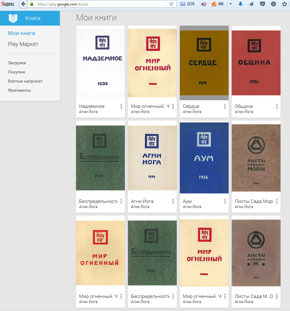 Живая Этика (Агни Йога), Теософия | | | Результаты поиска в Google | | | Результаты поиска по Агни Йоге | | | 19.12.2013, 08:27 | #1 | Рег-ция: 04.04.2007 Сообщения: 1,004 Благодарности: 3 Поблагодарили 137 раз(а) в 95 сообщениях | Агни Йога и Грани Агни Йоги - приложения для Android устройств До последнего времени не было не одной программы под андройд, которая позволяла бы нормально читать громадные chm справки по Агни Йоге. Но вот недавно появилась программа Kingreader 4.9, которая отлично справляется с этой задачей - рекомендую всем! | | | | Этот пользователь сказал Спасибо Suny за это сообщение. | | 04.07.2014, 06:07 | #2 | Рег-ция: 04.04.2007 Сообщения: 1,004 Благодарности: 3 Поблагодарили 137 раз(а) в 95 сообщениях | Агни Йога и Грани Агни Йоги - приложения для Android устройств __________________ Самосовершенствуйся и будь ярым в добре | | | | Эти 5 пользователя(ей) сказали Спасибо Suny за это сообщение. | | 29.08.2014, 07:02 | #3 | Рег-ция: 04.04.2007 Сообщения: 1,004 Благодарности: 3 Поблагодарили 137 раз(а) в 95 сообщениях | Ответ: Чем просматривать chm cправки по Агни Йоге в android? Появилась программа, которая лучше. Chm reader F от jiwu на googl play позволяет спокойно читать и Агни Йогу и Грани Агни Йоги и работы Свами Вивеканды в chm формате, которые можно скачать на моем сайте www.suny-o.narod.ru. Kingreader работы Свами Вивеканды в chm читать не позволяет и работает он медленее. Единственный минус программы глобальный поиск по документу, хотя есть нормальный поиск по текущей странице. И все же это лучшая программа для чтения chm на android на данный момент. Примечание: на googl play есть готовые приложения для чтения Агни Йоги и Граней - ссылки на них вы можете найти на данном форуме в разделе " малые проекты". __________________ Самосовершенствуйся и будь ярым в добре Последний раз редактировалось Suny, 29.08.2014 в 07:05. | | | 28.02.2016, 15:38 | #4 | | Administrator Рег-ция: 14.12.2002 Адрес: Москва Сообщения: 44,905 Благодарности: 1,988 Поблагодарили 7,073 раз(а) в 4,822 сообщениях | Книги Агни Йоги в формате ePub Друзья, для чтения книг Агни Йоги на мобильных устройствах можно забрать книги в формате ePub по данной ссылке. Формат поддерживается как для iOS, так и для Android. Для загрузки в телефон на платформе Android достаточно загрузить книги в раздел "Мои книги". ----------------------- Последний раз редактировалось Владимир Чернявский, 28.02.2016 в 15:42. | | | | Эти 2 пользователя(ей) сказали Спасибо Владимир Чернявский за это сообщение. | Iva (28.02.2016), Шура (25.11.2018) | 02.03.2016, 08:01 | #5 | | Administrator Рег-ция: 14.12.2002 Адрес: Москва Сообщения: 44,905 Благодарности: 1,988 Поблагодарили 7,073 раз(а) в 4,822 сообщениях | Ответ: Книги Агни Йоги в формате ePub На «GooglePlayКниги» размещены платные варианты книг от издательства МЦР: | | | 25.07.2020, 05:34 | #6 | Рег-ция: 24.07.2007 Адрес: Екатеринбург Сообщения: 1,394 Благодарности: 752 Поблагодарили 168 раз(а) в 112 сообщениях | Ответ: Книги Агни Йоги в формате ePub Цитата: Сообщение от Владимир Чернявский Друзья, для чтения книг Агни Йоги на мобильных устройствах можно забрать книги в формате ePub по данной ссылке. Формат поддерживается как для iOS, так и для Android. Для загрузки в телефон на платформе Android достаточно загрузить книги в раздел "Мои книги". ----------------------- | Не открываются. Пишет "Произошла ошибка"... | | | 26.07.2020, 22:39 | #7 | | Administrator Рег-ция: 14.12.2002 Адрес: Москва Сообщения: 44,905 Благодарности: 1,988 Поблагодарили 7,073 раз(а) в 4,822 сообщениях | Ответ: Книги Агни Йоги в формате ePub Цитата: Сообщение от Элайя Не открываются. Пишет "Произошла ошибка"... | Не вижу проблемы. Все открывается. | | | 29.07.2020, 15:16 | #8 | Рег-