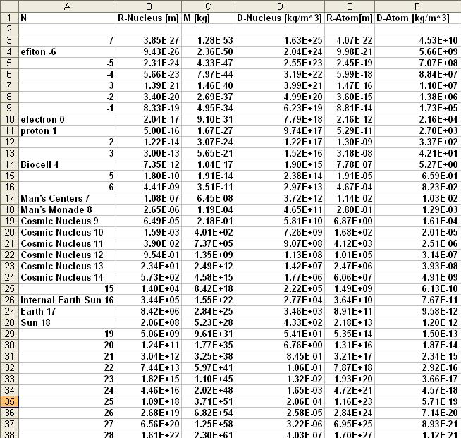 Живая Этика (Агни Йога), Теософия | | | Результаты поиска в Google | | | Результаты поиска по Агни Йоге | | | 01.05.2014, 19:32 | #41 | | Banned Рег-ция: 10.03.2006 Сообщения: 7,097 Благодарности: 227 Поблагодарили 847 раз(а) в 654 сообщениях | Ответ: Микерников Н.Г. Эфир Вселенной и современное естествознание. Цитата: Сообщение от Swark Итак, окончательно получаем: MM = 1836.2 MR = 24.7415 MD = 8.248 | Пока не окончательно. Выше я считал Числа по данным о радиусах Солнца и протона. Если посчитать по данным об их плотности, то получим: MM = 1836.2 MR = 24.3157 MD = 7.8296 Что выбрать, или взять среднее и посчитать? Пока подумаю. | | | 01.05.2014, 19:58 | #42 | | Banned Рег-ция: 10.03.2006 Сообщения: 7,097 Благодарности: 227 Поблагодарили 847 раз(а) в 654 сообщениях | Ответ: Микерников Н.Г. Эфир Вселенной и современное естествознание. Посчитаем среднее: MM = 1836.2 MR = 24.5286 MD = 8.0388 Всё же, раз так, пусть Числа будут целыми или полуцелыми: MR = 24.500 = 49 / 2 MD = 8.000 Тогда вновь вычисленное MM = 1838.3 (Отношение массы нейтрона к массе электрона 1838.6) 3.385 - это число означает во сколько радиус Солнца больше радиуса отдельного его Зерна. При новом расчете оно стало равно 3.364. Теперь можно и Таблицу строить. Последний раз редактировалось Swark, 01.05.2014 в 20:12. | | | 01.05.2014, 20:47 | #43 | | Banned Рег-ция: 10.03.2006 Сообщения: 7,097 Благодарности: 227 Поблагодарили 847 раз(а) в 654 сообщениях | Ответ: Микерников Н.Г. Эфир Вселенной и современное естествознание. Вроде посчитал. См. Таблицу в приложении. Пришлось считать, что радиус протона в 1.684 раза меньше общепринятого и равен 0.500 Ферми. Соответственно увеличилась плотность протона в 1.684 в кубе раз.Теперь надо осмысливать вновь полученное. | | | 01.05.2014, 23:23 | #44 | | Banned Рег-ция: 10.03.2006 Сообщения: 7,097 Благодарности: 227 Поблагодарили 847 раз(а) в 654 сообщениях | Ответ: Микерников Н.Г. Эфир Вселенной и современное естествознание. Исправил столбец плотности Зерна в предпоследнем варианте Таблицы и получил последний 5 вариант. Теперь я вполне доволен: плотности Зерна Солнца и протона соответствуют их массам и радиусам, а радиусы и массы соответствуют измеренным величинам. | | | 02.05.2014, 13:31 | #45 | Рег-ция: 18.09.2008 Сообщения: 8,948 Благодарности: 928 Поблагодарили 3,939 раз(а) в 2,535 сообщениях | Ответ: Микерников Н.Г. Эфир Вселенной и современное естествознание. Евгений, Ваша попытка найти соответствия между зерном духа и его размером в разных диапазонах вибраций вполне понятна и оправдана. Также существует связь между диапазоном и продолжительностью жизни существа (скоростью протекания процессов?). Есть несколько вопросов к Вам (один, возможно, связан с Вашими расчётами). Как Вы относитесь к следующему высказыванию Теслы, вписывается ли оно в Ваши представления? Что представляет из себя эфир, и почему его так трудно обнаружить? Я долго думал, над этим вопросом, и вот к каким выводам я пришёл: Известно, что чем плотнее вещество, тем выше скорость распространения в нём волн. Сравнивая скорость звука в воздухе, со скоростью света, я пришёл к выводу, что плотность эфира в несколько тысяч раз больше плотности воздуха. Но, эфир электрически нейтрален, и поэтому он очень слабо взаимодействует с нашим материальным миром, к тому же, плотность вещества, материального мира, ничтожна, по сравнению с плотностью эфира. Это не эфир бесплотен - это наш материальный мир, является бесплотным для эфира. Несмотря на слабое взаимодействие, мы всё же ощущаем присутствие эфира. Пример такого взаимодействия, проявляется 