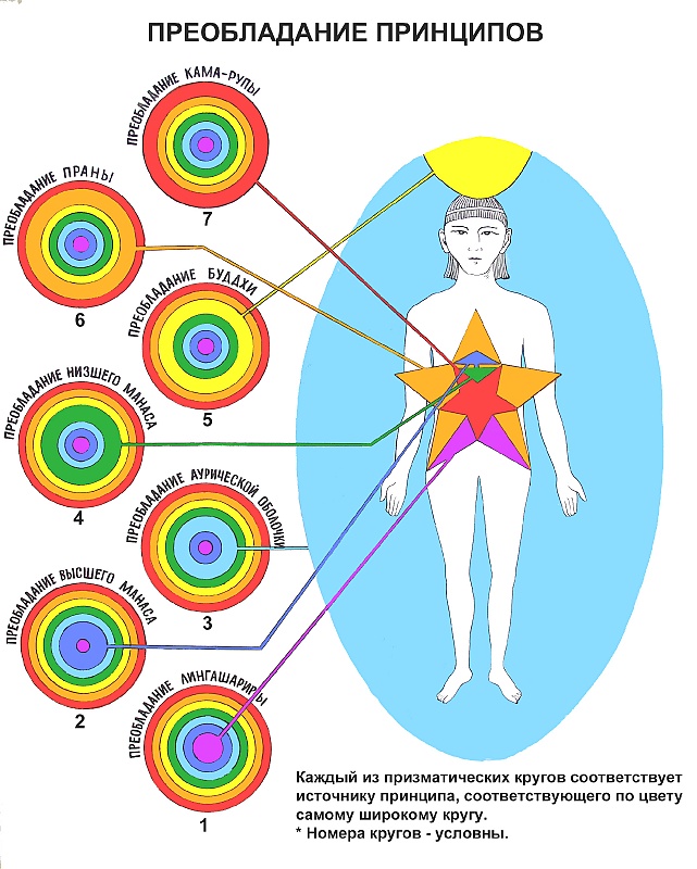 Живая Этика (Агни Йога), Теософия | | | Результаты поиска в Google | | | Результаты поиска по Агни Йоге | | | 25.02.2017, 14:16 | #701 | | Banned Рег-ция: 02.10.2009 Адрес: Нижний Новгород Сообщения: 9,051 Благодарности: 871 Поблагодарили 1,230 раз(а) в 987 сообщениях | Ответ: Агни Йога и Теософия Цитата: Сообщение от Андрей Вл. Доктрина о посмертном существовании Махатмы - Е.П.Б. говорит об объективном пребывании в Траялоке, но в состоянии полного субъективизма, где каждый переживает ту реальность, которая была создана верованиями и представлениями развоплотившейся личности, а затем Высшее Эго пожинает свои плоды в Девачане. | "Теософский Словарь" говорит, что субъективность Трилокья представляет знание непосвященного буддиста, чьи три "мира" лежат всецело в областях морали. Но, например,Трилокья экзотерического брамина (там же) представляет три упадхи. Думается, что прежде необходимо разобраться с этими - с упадхи, которые много чаще фигурируют в теософских пояснениях в связи с "принципами" человека, которые являются "ключом" ко всем состояниям. | | | 25.02.2017, 16:32 | #702 | | Banned Рег-ция: 16.12.2013 Адрес: С-Пб Сообщения: 6,908 Благодарности: 898 Поблагодарили 1,969 раз(а) в 1,381 сообщениях | Ответ: Агни Йога и Теософия Есть такая схема | | | 25.02.2017, 20:58 | #703 | | Banned Рег-ция: 16.12.2013 Адрес: С-Пб Сообщения: 6,908 Благодарности: 898 Поблагодарили 1,969 раз(а) в 1,381 сообщениях | Ответ: Агни Йога и Теософия Размышляя над этими рисунками, можно прийти к выводу, что Линга Шарира не является астральным телом. Он транспортёр сознания и праны всех её проявлений до тончайших эфирных прежде всего. Грубые эфирные транспортёры за ненужностью работы с отпавшими оболочками распадаются и возвращаются в свои горизонты. Как гипотеза ... Последний раз редактировалось Речник, 25.02.2017 в 21:04. | | | 26.02.2017, 13:58 | #704 | | Administrator Рег-ция: 14.12.2002 Адрес: Москва Сообщения: 44,905 Благодарности: 1,988 Поблагодарили 7,073 раз(а) в 4,822 сообщениях | Ответ: Агни Йога и Теософия Цитата: Сообщение от Андрей Вл. Цитата: Сообщение от Владимир Чернявский Многие состояния и сферы", жизнь в кама-локе, рупа-локе, арупа-локе - все это обозначено в статье. Так же и как различные градации дэвачана, низшие и высшие ступени, а так же - жизнь за сферами дэвачана. | ...Доктрина о посмертном существовании Махатмы - Е.П.Б. говорит об объективном пребывании в Траялоке, но в состоянии полного субъективизма, где каждый переживает ту реальность, которая была создана верованиями и представлениями развоплотившейся личности, а затем Высшее Эго пожинает свои плоды в Девачане. Для оболочки наступает период "жить в мире тонком", где она действительно встречается и общается уже объективно с другими оболочками (если сохраняет проблески сознания, а не спит!) того же "подплана" кама - локи. | Обратите внимание на следующий намек: Цитата: | Следовательно, в дэвачане существо испытывает на себе влияние и ответно влияет на психическое состояние любого другого существа, связь с которою достаточно прочна, чтобы пережить, как отмечалось выше, очистительное прохождение через низшие посмертные сферы. Их взаимодействие будет восприниматься духовно, но всё же на протяжении всего общения (в его нынешнем понимании западными философами) каждый будет "отделен от остальных". | Иными словами, несмотря на то, что объективно дух каждого развоплощенного существа "отделен от остальных" (а как же иначе, в мире лишенном физической пр