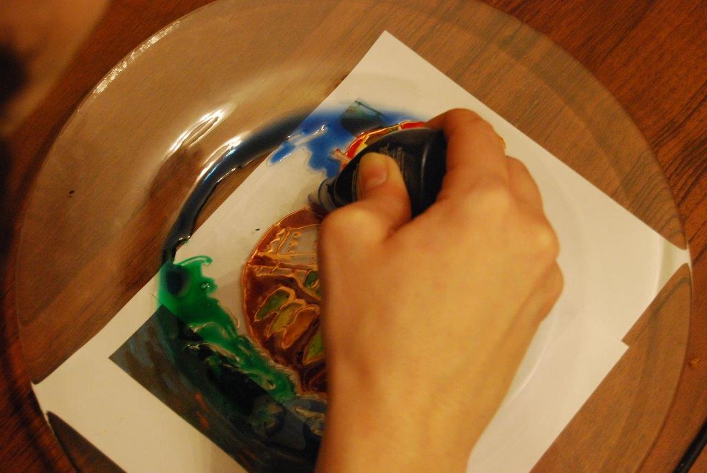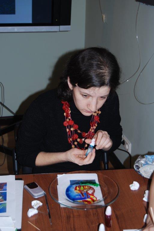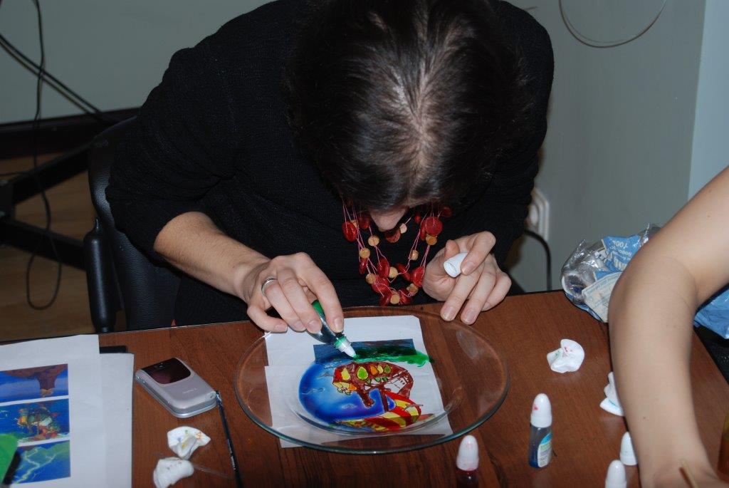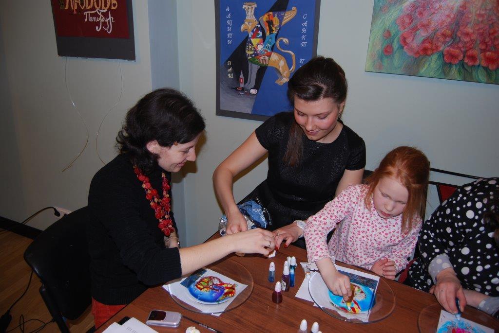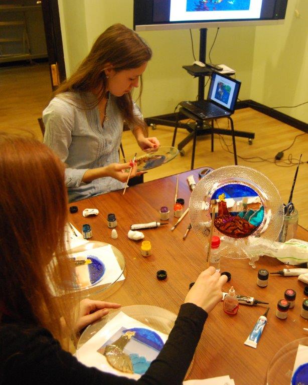 На стеклянных тарелках более 10 желающих изображали мотивы четырёх известных полотен Н. К. Рериха в стиле витражной росписи.