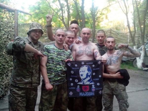 Тем временем, в оккупированной укронацистами Авдеевке, укронацисты позириюут перед камерами, чтобы доказать всему миру, а в частности "зомбированным" людям России, что фашизма на Украине нет, его придумал Киселёв.