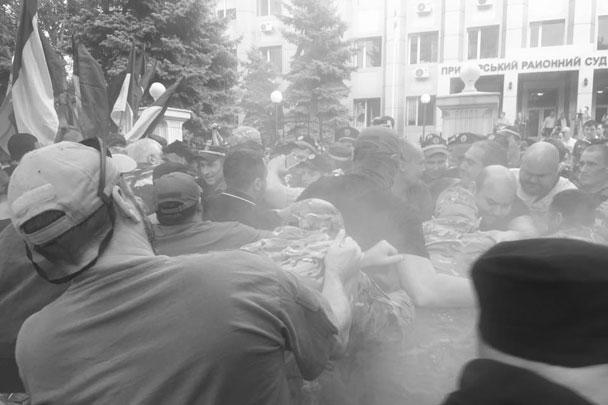 Члены националистических организаций услышали этот призыв, и в настоящее время у здания Приморского райсуда проходит акция протеста, возникли потасовки. «У здания суда находятся около сотни активистов евромайдана. Они даже успели зажечь покрышку. Внутри здания находятся серьезные силы милиции и нацгвардии», – рассказал газете ВЗГЛЯД главный редактор одесского издания «Таймер» Юрий Ткачев, находящийся в здании суда.