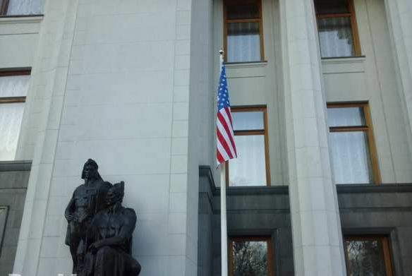 В честь приезда вице-президента Соединенных Штатов Америки Джозефа Байдена и его выступления перед украинскими депутатами на здании Верховной Рады вывесили флаг США.