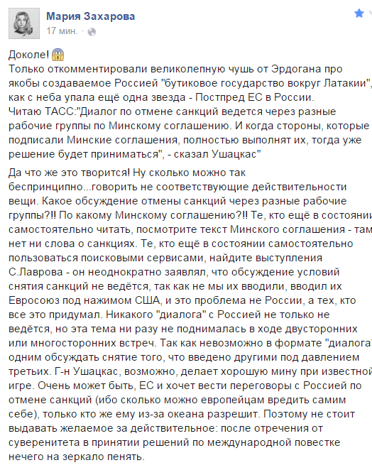«Если все сначала звонят в Вашингтон, то Вашингтон после этого звонит в Москву», ответила Захарова.
