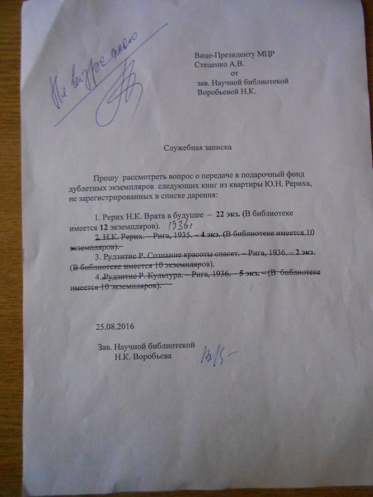 Например, только небольшой эпизод - передача архивных книг в "подарочный фонд". Не учет этих же книг в официальных документах дарения.