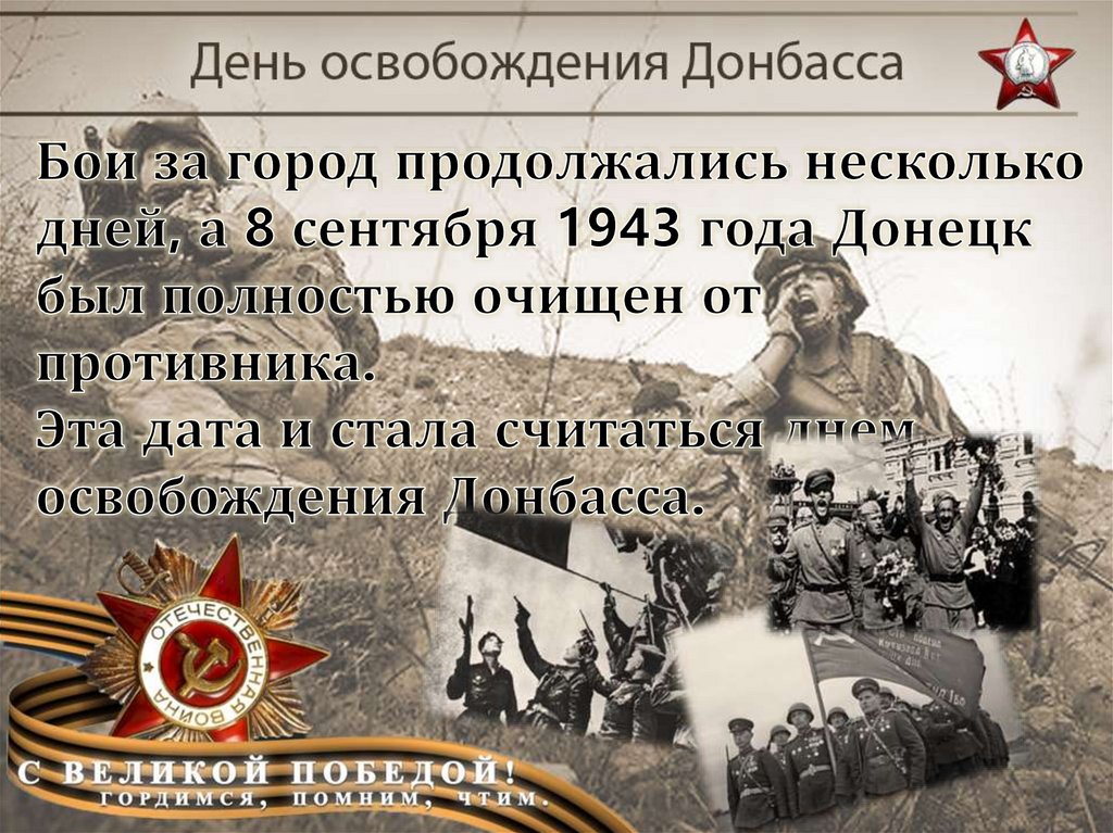 8 СЕНТЯБРЯ 1943 года ДЕНЬ ОСВОБОЖДЕНИЯ ДОНЕЦКА ОТ ГЕРМАНСКИХ НАЦИСТОВ