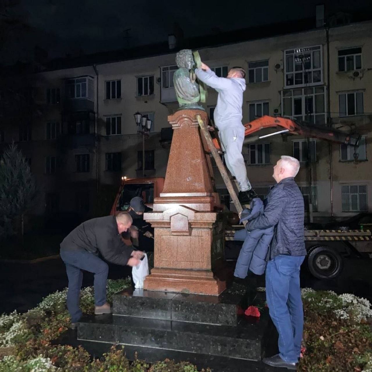Бюст Александра Сергеевича Пушкина при падении во время демонтажа пробил голову местному активисту, лидеру общественного движения «Гарна Украина». Активист скончался на месте, не приходя в сознание.