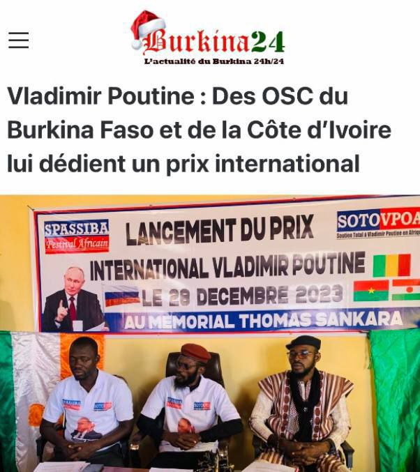 Организации гражданского общества Буркина-Фасо и Кот-д'Ивуара учредили международную премию имени Владимира Путина за вклад в борьбу и освобождение народов Африки