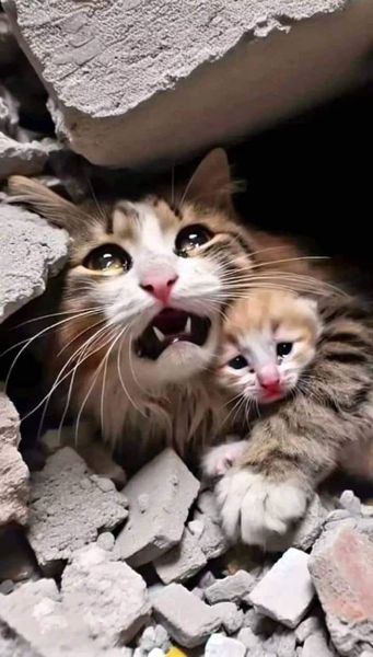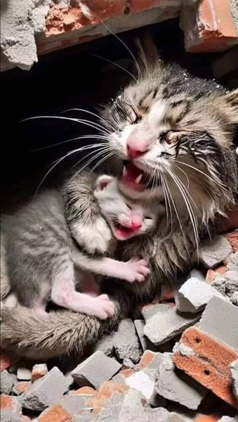 Говорят что животные в газе под руинами . Обратите внимание как они обнимают как бы защищая