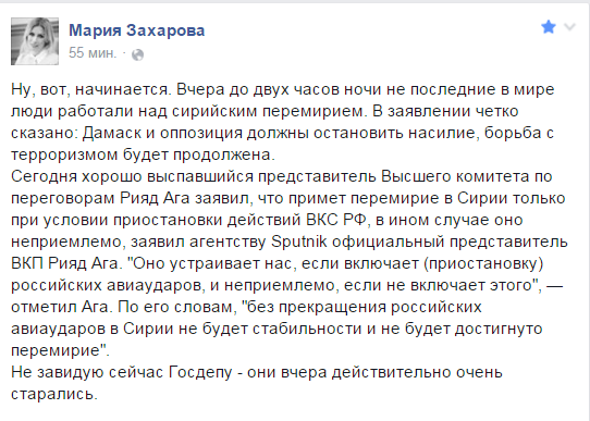 «Как и обещали нашим американским партнёрам, скрывать информацию небудем. Вчера в 13:55 по московскому времени с территории Турции, кратчайшим курсом прямо на Алеппо в сирийское небо вошли два штурмовика ВВС США «А-10» и по полной отработали по объектам в городе. Полковник Уоррен [официальных представитель Пентагона — прим. РСН] почему-то не стал афишировать этот залёт в прямом и, кстати, в переносном смысле тоже»,— сказал официальный представитель министерства обороны РФ Игорь Конашенков.