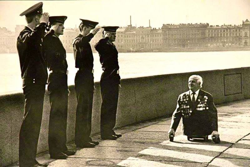 Рег-ция: 23.02.2008 Адрес: Украина Сообщения: 9,586 Благодарности: 5,319 Поблагодарили 2,741 раз(а) в 1,606 сообщениях | ![]() История знаменитой фотографии ветерана Анатолия Леопольдовича Голимбиевского http://artyushenkooleg.ru/index.php?cID=973 Этот снимок, на котором курсанты Нахимовского училища во главе с офицером отдают честь ветерану, был сделан в 1989 году, на набережной в Ленинграде фотографом Иваном Куртовым. Первой этот снимок опубликовала «Смена» — самая прогрессивная на то время газета. Эта фотография часто появляется на просторах «всемирной паутины». Всегда без комментариев. И всегда вызывает непередаваемые эмоции. Один раз увидев этот снимок, не забудешь никогда. Героический ветеран, улыбающийся, несмотря ни на что — Анатолий Леопольдович Голимбиевский. Это он, моторист эсминца «Сообразительный», — единственный выживший из всей группы, первой принявшей бой в Цемесской бухте под Новороссийском. Краснофлотец Анатолий Голимбиевский был в первом составе десанта морской пехоты, высадившемся на Малую землю. Его нашли на поле боя без признаков жизни, с ранениями в ноги и руки. В Тбилисском госпитале отважного моряка спасли, а вот ноги сохранить не смогли. Но этот краснофлотец излучал такое жизнелюбие, что сумел завоевать и взять в жены старшую медсестру — грузинку Мирцу. Дочь Тамара родила внука, дождался Анатолий Леопольдович и правнука… Стоит признаться, что подробности его мужественного поступка, пожалуй, сохранились только в мемуарах бывшего командира «Сообразительного», контр-адмирала С. С. Воркова. Лучше очевидца этих событий рассказать невозможно. ...Мысхако. Многострадальная Малая земля. Под Новороссийском Анатолия Голимбиевского приняли в партию. С раскаленным от жаркой стрельбы автоматом, в изодранной тельняшке, он яростно рвался вперед. Только вперед. На врага... Споткнулся о пулеметную очередь. Вскочил и упал снова. С досадой ощупал колено — липкое от крови. Стиснув зубы, пополз вперед, куда побежали другие. Вскоре Голимбиевский пробрался к вражескому дзоту, занятому тринадцатью ранеными десантниками, и два дня вместе с ними держал оборону. На третий день, раненный и в другую ногу, один пополз на пулеметное гнездо. Метко бросил «лимонку». Вражеская пуля угодила в правую руку. Он вернулся к товарищам. В живых оставалось только четверо. Лишь на седьмые сутки нестерпимого грохота, жажды, голода его подобрали на мотобот. В Геленджикском госпитале после осмотра хирург сказал: — Газовая гангрена. Только ампутация ног... Согласны? — Жить хочу! — ответил Голимбиевский. … Анатолий Голимбиевский прожил до 80 лет, заражая всех вокруг своим жизнелюбием. Его «золотые руки» нашли применение в институте метрологии, где он всю жизнь проработал ведущим инженером и изготовил тысячи механизмов, приборов и приспособлений. По городу и на дачу ездил сам на автомобиле, который переделал на ручное управление. — Я горжусь, — говорил он, — что родом из моряцкого племени. Я верю в неодолимую силу, мощь и прогресс нашего Военно-морского флота... Верю в непоколебимость нашего флага — флага морской державы, морской гвардии... | ||