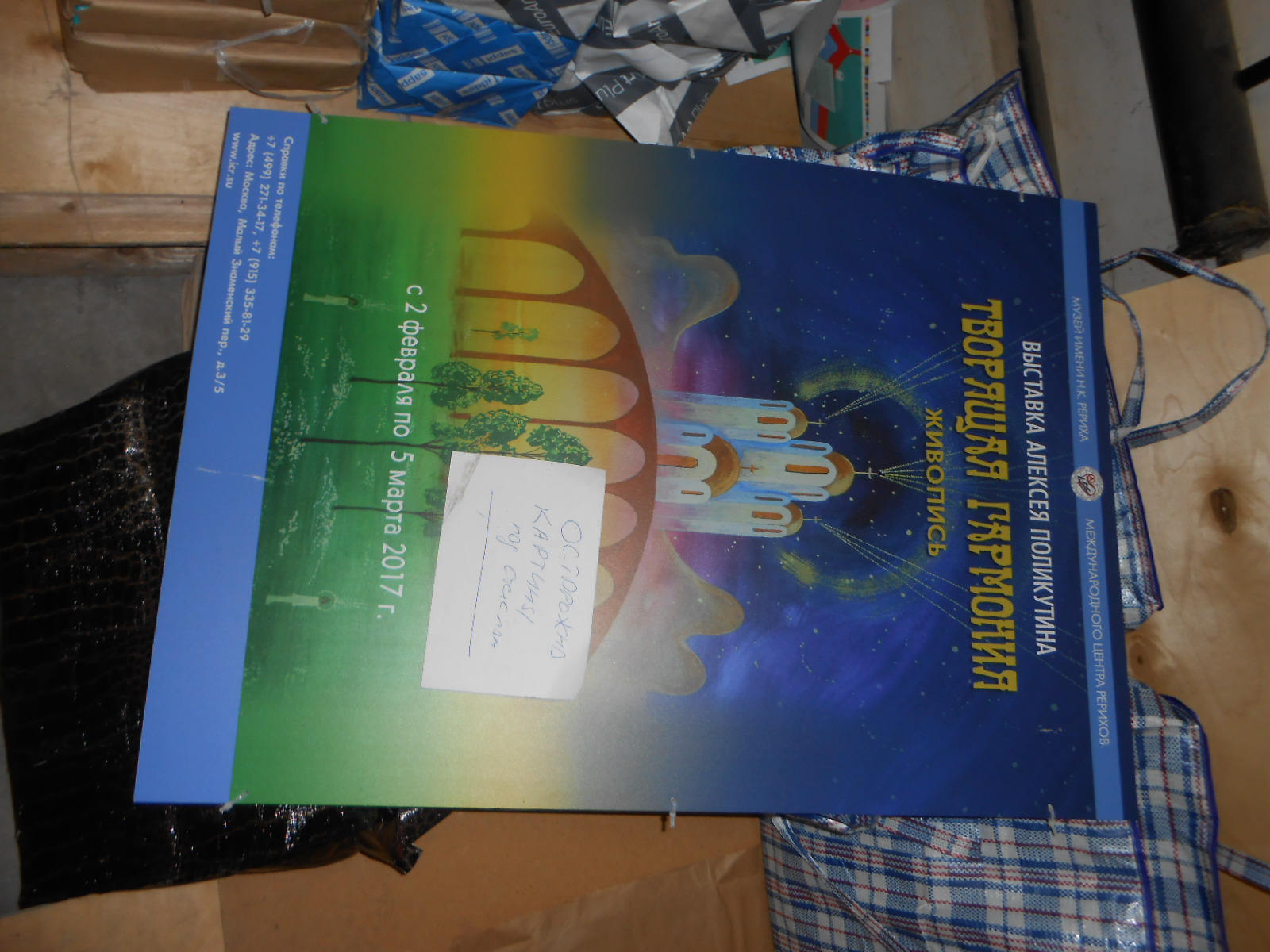 Еще один эпизод. В гараже - прямо на бетонном полу в челночных сумках лежат картины с выставки художника Алексея Поликутина. Тут уж не до "температурного режима".