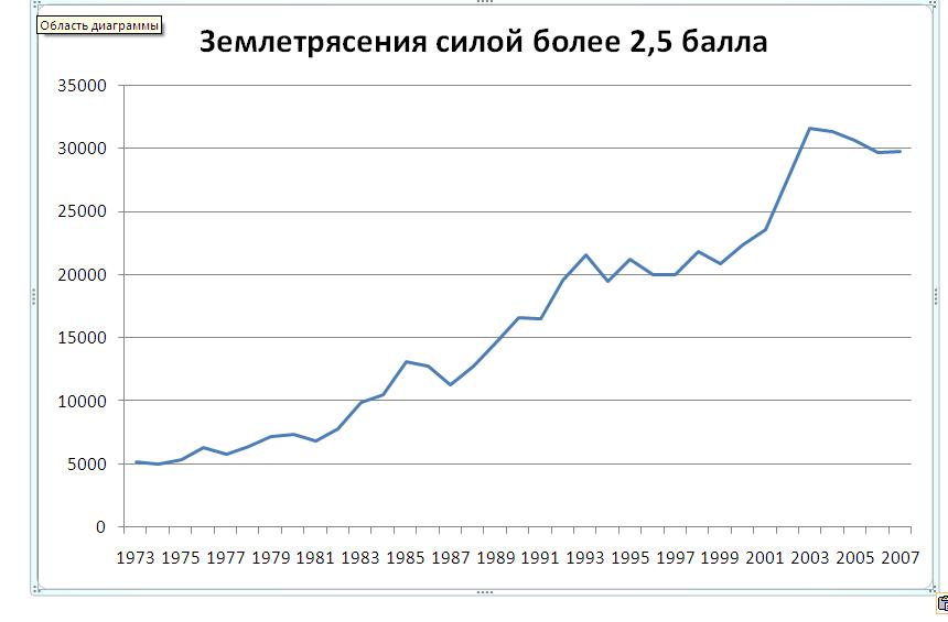 Живая Этика (Агни Йога), Теософия | | | Результаты поиска в Google | | | Результаты поиска по Агни Йоге | | | 22.04.2008, 16:58 | #1 | Рег-ция: 06.02.2008 Сообщения: 47 Благодарности: 8 Поблагодарили 7 раз(а) в 4 сообщениях | Статистика землетрясений Доброго дня, коллеги! Хочу поделиться интересной информацией. На сайте United States Geological Survey’s (USGS) я взял статистику всех землетрясений с 1973 по 2008 гг. Так вот,если в 1973 году произошло 5191 землетрясение магнитудой более 2,5 баллов, то в 2007 году таких землетрясений было 29 746 (!). А с 1 января 2008 по 21 апреля 2008 было 7 324 землетрясения! [IMG]file:///C:/Temp/moz-screenshot.jpg[/IMG][IMG]file:///C:/Temp/moz-screenshot-1.jpg[/IMG] Земля серьезно больна! Во вложении - диаграмма P.S. Исходные файлы могу выслать по почте, кому интересно (но форуме выложить не могу из-за ограничений по объему) | | | | Эти 2 пользователя(ей) сказали Спасибо region111 за это сообщение. | | 23.04.2008, 10:59 | #2 | Рег-ция: 15.07.2005 Сообщения: 8,847 Благодарности: 790 Поблагодарили 1,823 раз(а) в 1,176 сообщениях | Ответ: Статистика землетрясений Цитата: Сообщение от region111 .. Земля серьезно больна! | Она вылечится сразу же как человечество выздоровеет.  | | | | Этот пользователь сказал Спасибо Musiqum за это сообщение. | | 23.04.2008, 16:04 | #3 | Рег-ция: 03.01.2007 Адрес: Ростов-на-Дону Сообщения: 2,177 Благодарности: 1,491 Поблагодарили 197 раз(а) в 114 сообщениях | Ответ: Статистика землетрясений Цитата: Сообщение от Musiqum Цитата: Сообщение от region111 .. Земля серьезно больна! | Она вылечится сразу же как человечество выздоровеет.  | Уверен, не выздоровеет, без ампутации безнадежно больной части (человечества)... Последний раз редактировалось Landre, 23.04.2008 в 16:05. | | | | Этот пользователь сказал Спасибо Landre за это сообщение. | | 23.04.2008, 16:11 | #4 | Рег-ция: 13.04.2005 Адрес: Республика Беларусь Сообщения: 1,032 Благодарности: 45 Поблагодарили 54 раз(а) в 45 сообщениях | Ответ: Статистика землетрясений Каждый сам решит быть ему больной частью в следствии этого быть ампутированным, или же стать здоровым и продолжить жизнь на Земле. __________________ Встретимся в вечности... | | | | Этот пользователь сказал Спасибо MATRIX за это сообщение. | | 23.04.2008, 16:50 | #5 | Рег-ция: 25.09.2004 Адрес: Москва, Кремль :-) Сообщения: 4,666 Благодарности: 116 Поблагодарили 350 раз(а) в 239 сообщениях | А как оценить вклад увеличения чувствительности сети сейсмостанций в рост числа фиксируемых землетрясений? | | | | Этот пользователь сказал Спасибо Dron.ru за это сообщение. | | 23.04.2008, 17:59 | #6 | Рег-ция: 05.05.2006 Адрес: Москва Сообщения: 20,431 Благодарности: 818 Поблагодарили 2,419 раз(а) в 1,452 сообщениях | Ответ: Статистика землетрясений интересно, есть статистика связи политичесих событий и землетрясений? __________________ Иерархия, 413 ... Мы оберегаем лишь на правильном пути. | | | | Этот пользователь сказал Спасибо Dar за это сообщение. | | 09.03.2010, 11:12 | #7 | Рег-ция: 25.08.2006 Адрес: Камчатка Сообщения: 8,329 Благодарности: 228 Поблагодарили 393 раз(а) в 330 сообщениях | Ожидается усиление сейсмической и вулканической активности В СМИ и в некоторых научных публикациях стали появляться различные тревожащие людей высказывания о приближении некой глобальной геологической катастрофы. Пресс-служба Всемирной Организации для Научного Сотрудничества «Наука без границ» (WOSCO SWB) попросила прокомментировать ситуацию известного ученого – геофизика, специалиста в области сейсмологии и геодинамики, Вице-Президента Международной Академии Наук H&E (Австрия, Иннсбрук), Академика Российской Академии Естественных Наук, докто