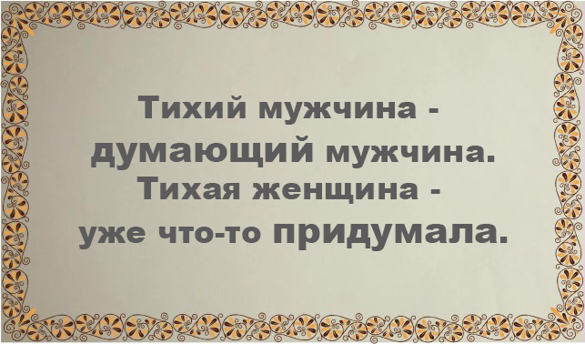 ...У меня жена лежит в больнице. Так вот. После работы заехал в магазин. Купил еды. Приехал домой. Убрал за котом. Встретил дитё со школы. Помог сделать уроки. Приготовил поесть. Накормил всех. Пробежался с пылесосом. Помыл посуду. Уложил мелочь спать. Накормил кота. Зарядил стирку. Везде прибрался. Ни телек ни комп даже не включал. Прилёг. Час ночи. Ни рук ни ног. Спина болит. Завтра рано вставать и вести детей на тренировку. Представил ситуацию: В дверь вваливается пьяная жена из бара с парой пива под мышкой. Врубает телек, гремит кастрюлями, ищща пожрать. Пьет пиво, курит на кухне, ржот. Потом идёт в спальню и пытается, воняя перегаром и табачищем, ко мне приставать. ПРИБИЛ БЫ НЕ ДУМАЯ!!!!!