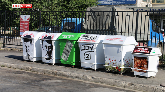 В Махачкале установили необычные мусорные контейнеры — с изображениями Адольфа Гитлера, Петра Порошенко, стодолларовой купюры и логитипа телепроекта «Дом-2».