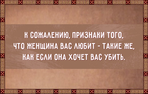 ...У меня жена лежит в больнице. Так вот. После работы заехал в магазин. Купил еды. Приехал домой. Убрал за котом. Встретил дитё со школы. Помог сделать уроки. Приготовил поесть. Накормил всех. Пробежался с пылесосом. Помыл посуду. Уложил мелочь спать. Накормил кота. Зарядил стирку. Везде прибрался. Ни телек ни комп даже не включал. Прилёг. Час ночи. Ни рук ни ног. Спина болит. Завтра рано вставать и вести детей на тренировку. Представил ситуацию: В дверь вваливается пьяная жена из бара с парой пива под мышкой. Врубает телек, гремит кастрюлями, ищща пожрать. Пьет пиво, курит на кухне, ржот. Потом идёт в спальню и пытается, воняя перегаром и табачищем, ко мне приставать. ПРИБИЛ БЫ НЕ ДУМАЯ!!!!!