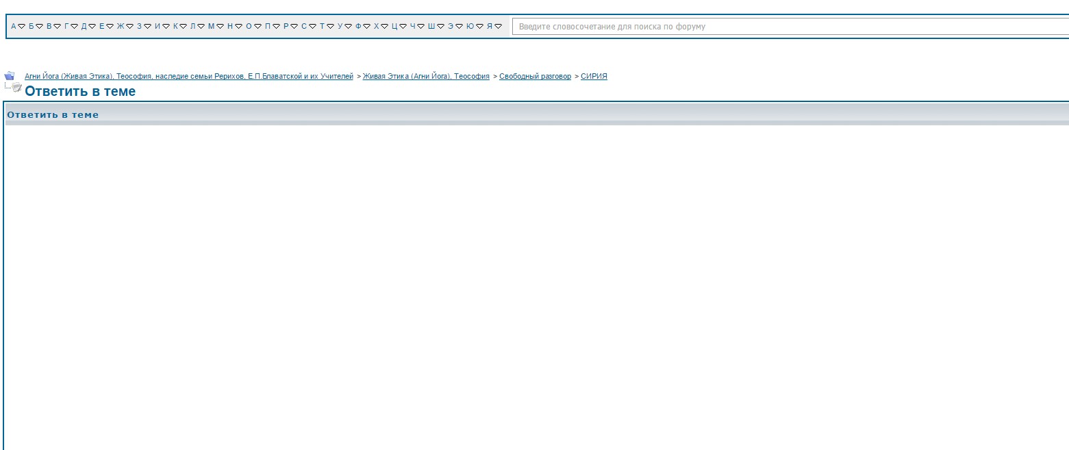Живая Этика (Агни Йога), Теософия | | | Результаты поиска в Google | | | Результаты поиска по Агни Йоге | | | 27.12.2011, 07:09 | #1 | Рег-ция: 21.01.2005 Адрес: г. Салехард Сообщения: 4,570 Благодарности: 97 Поблагодарили 372 раз(а) в 282 сообщениях | Ответ: Технический вопрос... Цитата: Сообщение от студент Цитата: Сообщение от Юрий Ганков Что-то у меня глюкануло в последних постах темы "Россия, Мир, события" Следующий пост появился как вкладка к предыдущему и без текста поста, только цитата. Это у меня проблемы или на форумном движке? | Сейчас нормально? | "Вкладка исчезла, но мой пост получается вне общего поля страницы....как бы сверху все едино, в рамках страницы, а последний пост вне поля и внизу страница не вся....Вчерашний пост, в котором не видно было текста появился, хоть и без цитаты....Это что-то у меня? __________________ Tantum possumus, quantum scimus - Мы можем столько, сколько мы знаем. Истина просторна и одинока - Иванка Руденко. Я Юра - Ура! | | | 27.12.2011, 07:15 | #2 | | Administrator Рег-ция: 14.12.2002 Адрес: Москва Сообщения: 44,904 Благодарности: 1,988 Поблагодарили 7,069 раз(а) в 4,821 сообщениях | Ответ: Технический вопрос... Цитата: Сообщение от Юрий Ганков Цитата: Сообщение от студент Цитата: Сообщение от Юрий Ганков Что-то у меня глюкануло в последних постах темы "Россия, Мир, события" Следующий пост появился как вкладка к предыдущему и без текста поста, только цитата. Это у меня проблемы или на форумном движке? | Сейчас нормально? | "Вкладка исчезла, но мой пост получается вне общего поля страницы....как бы сверху все едино, в рамках страницы, а последний пост вне поля и внизу страница не вся....Вчерашний пост, в котором не видно было текста появился, хоть и без цитаты....Это что-то у меня? | Многочисленные перепосты с YOUTUBE ломают страницы форума. Сейчас должно быть все нормально - пришлось часть удалить. | | | 27.12.2011, 10:33 | #3 | Рег-ция: 04.03.2003 Сообщения: 3,027 Благодарности: 161 Поблагодарили 313 раз(а) в 212 сообщениях | Ответ: Технический вопрос... Цитата: Сообщение от Владимир Чернявский Цитата: Сообщение от Юрий Ганков "Вкладка исчезла, но мой пост получается вне общего поля страницы....как бы сверху все едино, в рамках страницы, а последний пост вне поля и внизу страница не вся....Вчерашний пост, в котором не видно было текста появился, хоть и без цитаты....Это что-то у меня? | Многочисленные перепосты с YOUTUBE ломают страницы форума. Сейчас должно быть все нормально - пришлось часть удалить. | В цитатах вместо прямой ссылки на ютуб почему-то оказалось перенаправление с рерихкома на другой сайт. Я его удалил. Очевидно, случайно вместе со ссылкой ютуба. | | | 27.12.2011, 14:59 | #4 | Рег-ция: 21.01.2005 Адрес: г. Салехард Сообщения: 4,570 Благодарности: 97 Поблагодарили 372 раз(а) в 282 сообщениях | Ответ: Технический вопрос... Благодарю вас. Значит не нужно перепосты делать с роликами. Понял. __________________ Tantum possumus, quantum scimus - Мы можем столько, сколько мы знаем. Истина просторна и одинока - Иванка Руденко. Я Юра - Ура! | | | 29.12.2011, 20:22 | #5 | | Banned Рег-ция: 10.03.2006 Сообщения: 7,097 Благодарности: 227 Поблагодарили 847 раз(а) в 654 сообщениях | Ответ: Технический вопрос... Когда открываешь страничку произвольного пользователя Х, то на самом центральном месте висит надпись "Добавить Х в список игнорирования", можно ли эту надпись спрятать так чтобы она не бросалась в глаза и ее даже приходилось искать, а то негатив прям по центру страницы неприятен.  | | | 08.01.2012, 16:19 | #6 | | Banned Рег-ция: 19.04.2011 Сообщения: 2,359 Благодарности