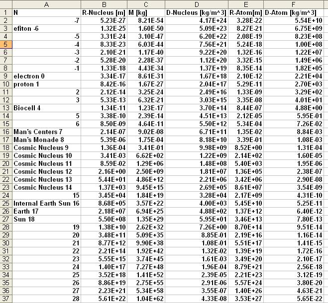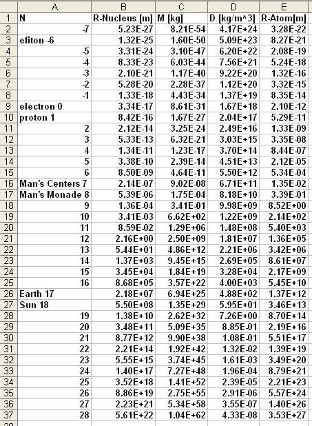 Расширил вложенную таблицу. Добавил столбец со средней плотностью соответствующего данному Зерну Атома Водорода. А также названия для номеров N исходя из моего понимания Агни Йоги. Пока не решил куда отнести психозерно: к -1 или к 2. Или может к 0.