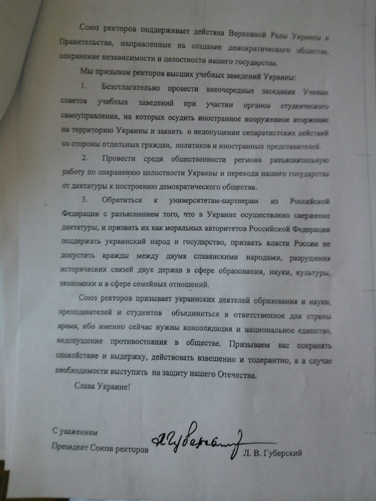 "Вот такая бумажка пришла к нам в университет г.Донецк.
