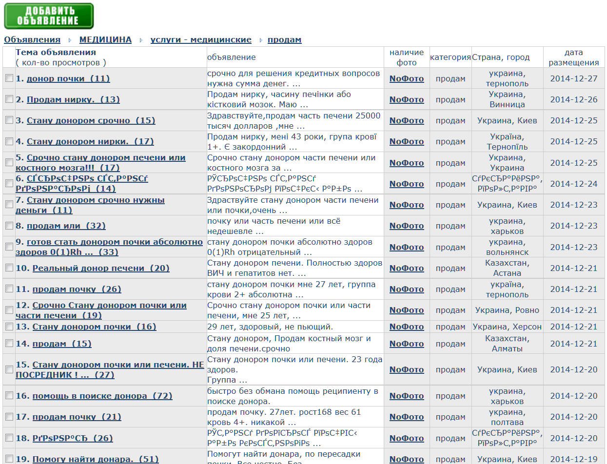 Ради денег украинцы вовсю торгуют своими органами через интернет