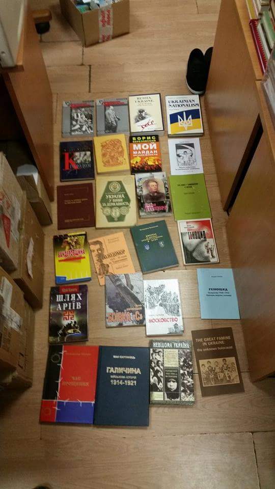 "Обыски проходят в здании Библиотеки украинской литературы на ул. Трифоновская. Оперативники изымают из библиотеки документы, электронные носители и некоторую литературу", — сказал собеседник агентства.