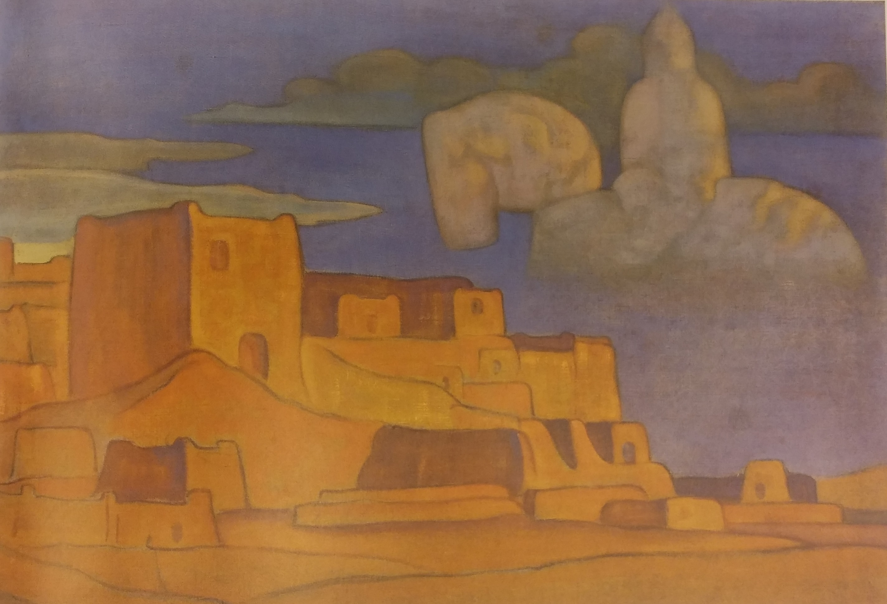В книге ALTAI-HIMALAYA (русская рукопись не найдена) автор, в переводе, называет картину "Ruler of Shambhala", в письме от 1.5.1945 - "Великий Всадник". Осталось увидеть фото оборота, чтобы иметь уверенность в варианте Юрия Рериха.