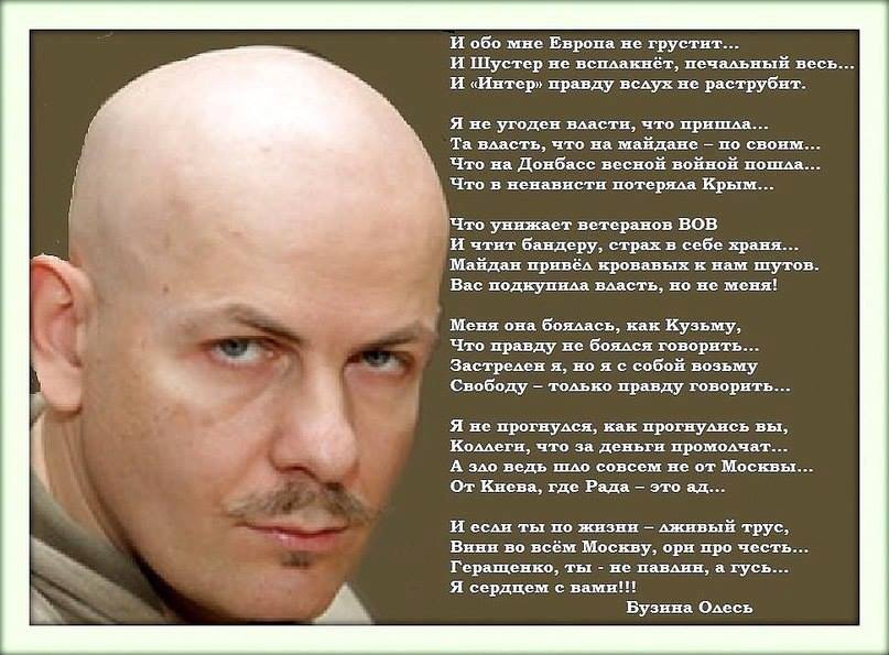 — Я очень люблю Украину, несмотря на то, что я в списке запрещённых там российских артистов. Сегодня не быть в этом «чёрном списке» приличному человеку просто неприлично. При этом и актёр Василий Лановой, который на мове размовляет, тоже персона нон грата на Украине. Можно взаимные упрёки друг другу предъявлять бесконечно. Но, дорогие друзья, после Нюрнбергского трибунала называть улицы и проспекты именем Бандеры и Шухевича — это преступление. Для любой приличной и разумной страны — это просто позор. На Нюрнбергском процессе фашизм был осуждён как преступная идеология. За распространение нацистских идей и восхваление нацистских лидеров существует преследование законом во всех странах планеты. Я бы сам переименовал многое. Свердловскую область, например, или станцию метро Войковская. И памятник Свердлову убрал бы в Екатеринбурге. Он для меня абсолютно нерукопожатный человек. Переименовывайте в кого хотите, кроме фашистов. Бандера и Шухевич, может быть, трижды боролись за освобождение украинского народа. Но они боролись вместе с нацистами и под нацистским флагом, разделяя нацистские убеждения. Они осуждены Нюрнбергским трибуналом. Поэтому что я могу ещё сказать о власти, которая это позволяет? (С) А. Розенбаум http://www.aif.ru/culture/person/ale...tavyat_v_pokoe