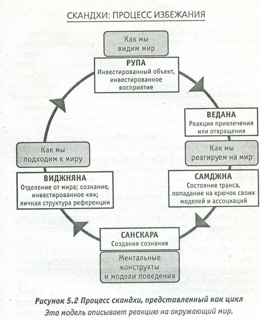 ...Исследование самскарических скандх может научить нас тому, что все феномены человеческой психологии, любые проявляющиеся типы паттернов мышления, все они имеют эти хорошие, плохие, а также безразличные качества. Таким образом мы не можем реально определить какой-нибудь паттерн мышления как однозначный – он не может быть не абсолютной агрессией, ни абсолютной страстью, ни абсолютным безразличием. Все они обладают слабой тенденцией других типов. В целом идея заключается в том, что не следует просто отвергать один тип мышления и полностью принимать другой, даже если этот тип – духовный и добродетельный. Такой тип сомнителен точно так же, как сомнительны другие типы мышления. Это очень важный момент – ничто не может быть реально принято или отвергнуто....