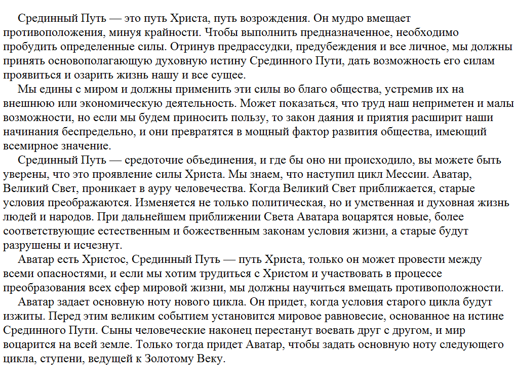 Живая Этика (Агни Йога), Теософия | | | Результаты поиска в Google | | | Результаты поиска по Агни Йоге | | | 12.05.2019, 22:00 | #141 | Рег-ция: 03.06.2018 Сообщения: 3,566 Благодарности: 292 Поблагодарили 310 раз(а) в 272 сообщениях | Ответ: Принцип Христа в познании Цитата: Сообщение от Рич Сказки-несказки, но из чужой оперы сия ария уж абсолютно точно. Хотелось бы понять из какой. Могли бы Вы обосновать, пожалуйста, утверждение "равновесие астрала" на трех аспектах в канве жизненного, практического примера? Со своей же стороны допускаю, что такой термин возможен лишь в обывательски обособленных рамках "румяной добродетели", делающей вид условной гармонии. Ибо в свете Учения астралу даже не полагается подражать принципу Христа, именуемого в АЙ согласованностью духа. Оптимально ему надлежит быть парализованным под уздой воли, а в идеале - быть вовсе сожженным как у ЕИР. На мой взгляд, установка "равновесия астрала" лежит на расстоянии полушага от "договора с сатаной". Вы иного мнения, Diotima? | Прошу прощения, я имела в виду равновесие эмоций. Как-то видимо у меня не все ясно определено с астралом, путаю его о с эмоциональным телом, то с кама-манасом, то с эфирным проводником. Видимо, Вы тоже путаетесь, потому что то, что в идеале должно сгореть как у ЕИР, это эфирный двойник, который является для человека что-то типа границы между астральным планом и физическим. То что в Учение названо астралом, который надо пролететь как на скоростном лифте, после смерти, так это я понимаю астральный план, так? А вот то, что парализовано под уздой воли- это как понимаю кама-манас- желания и страсти, так? | | | 12.05.2019, 22:04 | #142 | Рег-ция: 03.06.2018 Сообщения: 3,566 Благодарности: 292 Поблагодарили 310 раз(а) в 272 сообщениях | Ответ: Принцип Христа в познании Цитата: Сообщение от mika_il В данной цитате, как можно видеть, используется концепция Христа, имевшая место у гностиков, предшествовавших христианской церкви. Концепция спасительного (божественного) принципа в человеке. | А разве мы не о Принципе Христа говорим? Как о спасительном Божественном принципе в человеке? Последний раз редактировалось Diotima, 12.05.2019 в 22:05. | | | 12.05.2019, 22:34 | #143 | | Banned Рег-ция: 02.10.2009 Адрес: Нижний Новгород Сообщения: 9,051 Благодарности: 871 Поблагодарили 1,230 раз(а) в 987 сообщениях | Ответ: Принцип Христа в познании Цитата: Сообщение от Diotima Цитата: Сообщение от mika_il В данной цитате, как можно видеть, используется концепция Христа, имевшая место у гностиков, предшествовавших христианской церкви. Концепция спасительного (божественного) принципа в человеке. | А разве мы не о Принципе Христа говорим? Как о спасительном Божественном принципе в человеке? | Да. Но ожидаемо, что в неких рамках - либо предмета теософии, либо какого-то другого предмета. То, что теософия разъясняет созвучные концепции, вовсе не означает что в ней не содержится собственных, оригинальных. Djay, как я понимаю, этим и заинтересовалась - как бы Вы сумели связать гностический подход с теософским подходом. | | | 12.05.2019, 22:50 | #144 | Рег-ция: 21.01.2017 Сообщения: 100 Благодарности: 5 Поблагодарили 11 раз(а) в 9 сообщениях | Ответ: Принцип Христа в познании Цитата: Сообщение от Diotima ... я имела в виду равновесие эмоций. Как-то видимо у меня не все ясно определено с астралом, путаю его о с эмоциональным телом, то с кама-манасом, то с эфирным проводником. Видимо, Вы тоже путаетесь, потому что то, что в идеале должно сгореть как