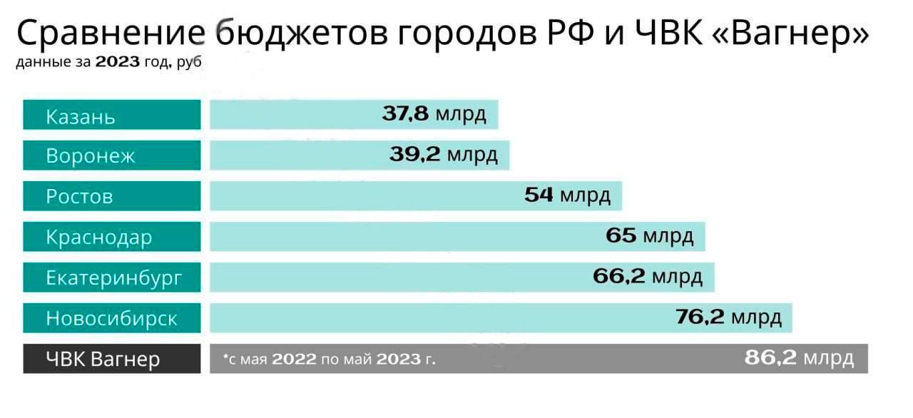 Годовой бюджет «Вагнер» оказался больше, чем бюджет Казани, Воронежа, Ростова, Краснодара, Екатеринбурга и Новосибирска.