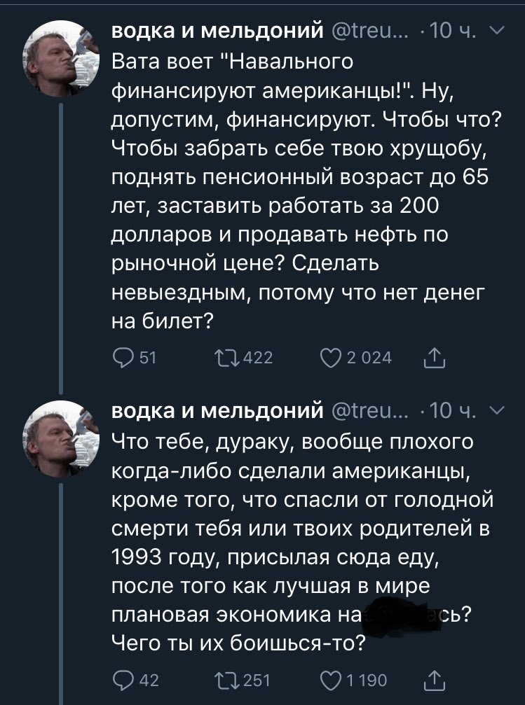 Живая Этика (Агни Йога), Теософия | | | Результаты поиска в Google | | Результаты поиска по Агни Йоге | | 22.02.2014, 01:24 | #1 | Рег-ция: 19.01.2005 Сообщения: 34,119 Благодарности: 15,294 Поблагодарили 3,612 раз(а) в 2,584 сообщениях | Россия и мир __________________ Сохраняйте душевный свет. Вопреки всему, не смотря ни на что. Это свет, по которому вас найдут такие же светлые души. Последний раз редактировалось Владимир Чернявский, 25.05.2015 в 21:15. | | | Эти 4 пользователя(ей) сказали Спасибо Ardens за это сообщение. | | 18.08.2019, 21:32 | #25541 | Administrator Рег-ция: 14.12.2002 Адрес: Москва Сообщения: 44,904 Благодарности: 1,988 Поблагодарили 7,069 раз(а) в 4,821 сообщениях | Ответ: Россия и мир Цитата: Сообщение от Migrant ... И я вам приводил примеры Парижа, Тбилиси, Киева и Арабской весны (сколько вам примеров ещё надо, чтобы понять?). Но не убедил, что площадь и цветные революции - это зло. | Не в коня корм. Эти люди выходят на улицы под лозунгами: "Получилось на Украине, получится и в России". | | | 18.08.2019, 21:46 | #25542 | Рег-ция: 22.02.2007 Сообщения: 20,384 Благодарности: 61 Поблагодарили 5,177 раз(а) в 3,585 сообщениях | Ответ: Россия и мир Вот такая оппозиция :  __________________ "Чем ближе к Солнцу,тем ближе к Истине" Александр Чижевский | | | 18.08.2019, 23:30 | #25543 | Рег-ция: 08.08.2018 Сообщения: 3,699 Благодарности: 547 Поблагодарили 754 раз(а) в 529 сообщениях | Ответ: Россия и мир Цитата: Сообщение от Migrant Вы знаете, что после Второй Мировой уровень экономики в США имел вот такие показатели:  Ну и, наверное, не знали, что СССР был в руинах и потерял 20 миллионов жителей страны? И, естественно, СССР догонял американцев в вооружении, ибо американцы постоянно проверяли боеготовность СССР то в Корейской войне, а потом во Вьетнаме. И о каком ширпотребе, то есть о товаров народного потребления могла идти речь? Или вы про гонку вооружения ничего не слышали? | Разве СССР лежал в руинах с 1961 по 1991 годы? Отставание в гонке технологий произошло ведь именно в эти годы. Уже не секрет, что в 1950-70 годах СССР был одним из мировых лидеров в гонке под названием «разработка и производство компьютерной техники». Не получается списать отставание в гонке технологий на войну и руины. Не был СССР в руинах во времена правления Брежнева. Компьютеры - это не ширпотреб. Компьютеры использовались/используются очень широко как в военной сфере, так и для управления народным хозяйством СССР. То что США имел 50% добычи угля после второй мировой войны - это каким-то образом объяснят почему в СССР забросили разработку собственных компьютеров и начали копировать западную технику? Цитата: Сообщение от Migrant Вы поймите, переучивать вас уже поздно, да и не собираюсь я этого делать, но вот высказал вам своё мнение, а там уже сами: либо изучайте, либо пребывайте в своих иллюзиях. Итак: http:// nksmrf.ru/category/ekonomika-sssr | Символ пробела надо ставить в адресной строке не после "http://", а перед "http://" и только в том случае, если в адресе есть русские буквы. В этом случае при копировании в буфер обмена браузер убирает из адреса uri-кодирование символов через проценты и hex-коды вида %D0%93%D0 и вместо этого в адресе будут раскодированные русские буквы и такой адрес нормально откроется даже через страницу с редиректом. Например, при копировании адреса страницы без пробела перед адресом, будет открываться с 404 ошибкой: https://ruxpert.ru/%D0%A3%D1%87%D0%B5%D0%B1%D0%BD%D0%B8%D0%BA_%D0%BB% D0%BE%D0%B3%D0%B8%D0%BA%D0%B8_%D0%A7%D0%B5%D0%BB%D 0%BF%D0%B0%D0%BD%D0%BE%D0%B2%D0%B0 При копировании с пробелом перед адресом, та же самая страница,