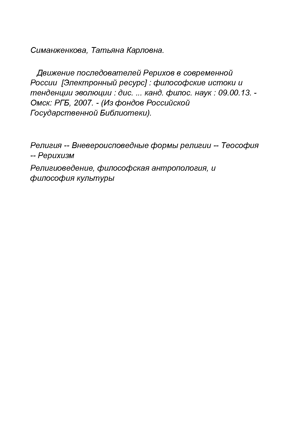 Живая Этика (Агни Йога), Теософия | | | Результаты поиска в Google | | | Результаты поиска по Агни Йоге | | | 17.11.2016, 15:30 | #721 | Рег-ция: 13.01.2003 Адрес: РФ Сообщения: 8,473 Благодарности: 1,121 Поблагодарили 1,580 раз(а) в 903 сообщениях | Ответ: Зернышко 3 Цитата: Сообщение от Эвиза Неужели нельзя на форумах создать такую творческую атмосферу общения? | Я считаю, что трудно, но можно. И в некоторые периоды такая атмосфера на форуме возникает, потом теряем. Иногда сами теряем, иногда нам "помогают". __________________ "Всегда вперед и только ввысь!" | | | | Этот пользователь сказал Спасибо Николай А. за это сообщение. | | 17.11.2016, 18:00 | #722 | | Administrator Рег-ция: 14.12.2002 Адрес: Москва Сообщения: 44,904 Благодарности: 1,988 Поблагодарили 7,069 раз(а) в 4,821 сообщениях | Ответ: РД угасает? Недавно перечитал занимательную диссертацию на тему развития Рериховского Движения. Работе уже 10 лет, но вполне можно обсудить выводы, которые сделал автор. Замечу, что исследование проведено более-менее объективно. Выводы интересны (прилагаю). -------------------------------------- | | | 17.11.2016, 22:31 | #723 | | Banned Рег-ция: 06.01.2009 Адрес: Восток-Запад Сообщения: 8,786 Благодарности: 704 Поблагодарили 2,355 раз(а) в 1,486 сообщениях | Ответ: Зернышко 2 Цитата: Сообщение от Николай А. Цитата: Сообщение от paritratar Вопрос в том, чем РД полезно для всех людей? | Например, следующим. Учение Живой Этики содержит громадный объем жизненных знаний. И участники РД могут выступать в роли добросовестных посредников по их передаче в нужные руки, вдохновителем нужных идей для ученых, творческих людей. | Николай, каким образом подобные идеи могут быть реализованs практически, как думаете? | | | 17.11.2016, 22:51 | #724 | Рег-ция: 13.01.2003 Адрес: РФ Сообщения: 8,473 Благодарности: 1,121 Поблагодарили 1,580 раз(а) в 903 сообщениях | Ответ: Зернышко 2 Цитата: Сообщение от Amarilis Цитата: Сообщение от Николай А. Цитата: Сообщение от paritratar Вопрос в том, чем РД полезно для всех людей? | Например, следующим. Учение Живой Этики содержит громадный объем жизненных знаний. И участники РД могут выступать в роли добросовестных посредников по их передаче в нужные руки, вдохновителем нужных идей для ученых, творческих людей. | Николай, каким образом подобные идеи могут быть реализованs практически, как думаете? | Применений много. Например, они были реализованы в виде небольших вкраплений из ЖЭ в произведениях Ивана Ефремова. Герои его книг произносят прекрасные речи в подходящих для этого эпизодах жизни героев. На этом форуме см. тему о нем тут. __________________ "Всегда вперед и только ввысь!" | | | 17.11.2016, 23:25 | #725 | Рег-ция: 13.01.2003 Адрес: РФ Сообщения: 8,473 Благодарности: 1,121 Поблагодарили 1,580 раз(а) в 903 сообщениях | Зернышко 4 Цитата: Сообщение от Владимир Чернявский Недавно перечитал занимательную диссертацию на тему развития Рериховского Движения. Работе уже 10 лет, но вполне можно обсудить выводы, которые сделал автор. Замечу, что исследование проведено более-менее объективно. Выводы интересны (прилагаю). -------------------------------------- | Да, помню диссертацию Т. К. Симанженковой. Обсуждалась бурно и на форумах, на сайтах РД, и на страницах обсуждений статей Википедии. Некоторые её утверждения очень спорны (для меня лично), так как она делает обобщения об РД на основе очень широкого спектра организаций. Среди которых есть и явные маргиналы, контактеры и псевдорериховцы (вообщем все кто просто так сам решил себя называть). Есть статья С.Скородумова по этой д