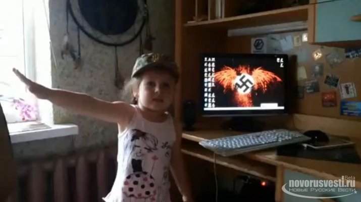 Уроки воспитания в этой конкретной семье, видимо, проходят каждый день. Сегодня на страницах интернет-пространства появилось продолжение этой видеоистории. Похоже, зарождается некий сериал и вот новая серия — «Как надо ненавидеть русских-2». На этом ролике та же маленькая девочка с нежным именем Марина стоит возле компьютера, на заставке которого изображена фашистская свастика. Фон, надо полагать, был выбран осознанно. А девочка за несколько дней уже выучила несколько других, пылающих ненавистью к человечеству фраз. Чем, собственно, и спешит поделиться гордый отец, выложив видеозапись в интернет.