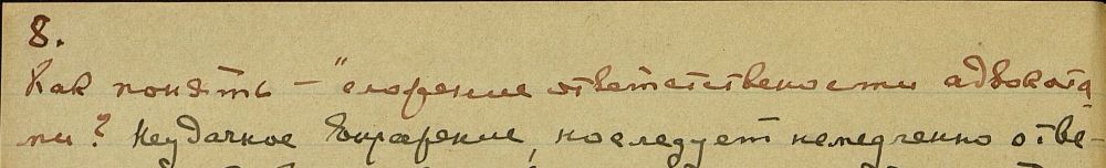 17 октября 1928 — Может ли Модр[а] в случае нужды прибегнуть к вопр[осам] Уч[ителю]? — Главное, нести весть. Да, да. Положите руки на прест[ол]. Люмоу, вижу Свет около тебя. Радна может сказать против раздражения.