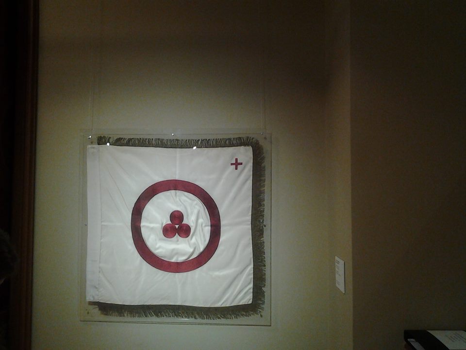 Четвертая часть экспозиции расположилась в маленьком Зале Боссе. Тут вывешено сохранившееся «Знамя мира», ручная работа, выполненная в 1933 году. Принадлежало оно Латвийскому обществу Рериха, а теперь — в экспозиции Музея истории Риги и мореходства. По стенам — работы Святослава Рериха. В том числе, замечательный портрет отца. Это ранний период творчества Святослава, потом он стал более ярким, земным, но уже тут видно основное отличие от Николая Рериха — в полотнах сына доминирует образ человека. В витринах расположились интересные архивные материалы по истории и деятельности Латвийского общества Рериха. — Как известно, рериховцы были репрессированы, — напоминает Ксения — Латвийские активные члены Общества — лишь за свою к нему принадлежность. Репрессии начались в 1949 году и продолжались до 1951 года. Тогда и началось возрождение рериховского движения и возвращение рериховского творчества к зрителю.